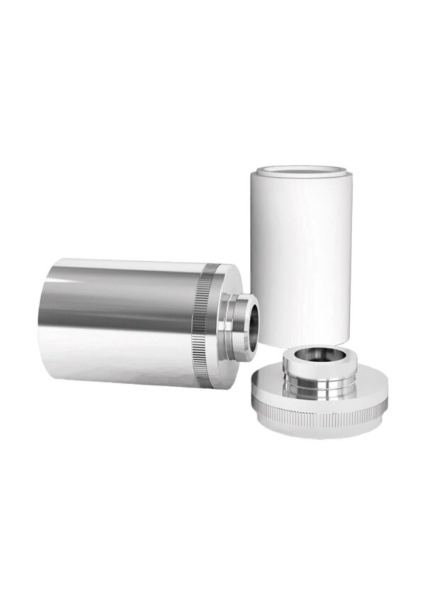 Das Gehäuse besteht aus verchromtem Metall, so dass noch mehr Generationen das Vergnügen haben, chlorfrei zu duschen.